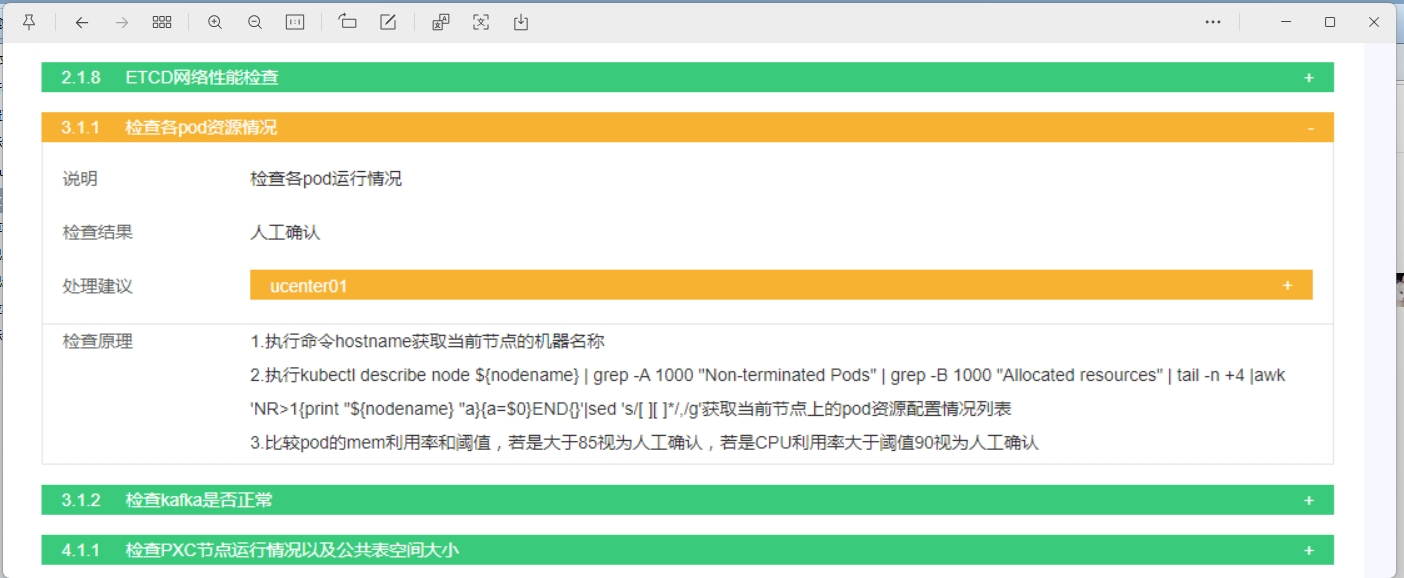 echo "当前节点名称: $nodename"kubectl describe node ${nodename} | grep -A 1000 "Non-terminated Pods" | grep -B 1000 "Allocated resources" | tail -n +4 | awk 'NR>1{print "'${nodename}' " a}{a=$0}END{}' | sed 's/[][] */ /g'kubectl describe node的输出中,精准提取出“非终止状态的Pod”列表及其资源分配情况,并进行格式化处理。matrix01这台服务器上操作。kubectl配置,能访问到对应的Kubernetes集群。kubectl get node确认能否列出节点,并检查 matrix01是否在列表中且状态为 Ready。kubectl describe node matrix01 \| grep -A 1000 "Non-terminated Pods",看是否有输出,逐步定位问题。kubectl get pod -o wide \| grep matrix01查看。|、空格和参数格式。