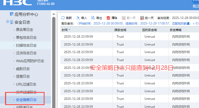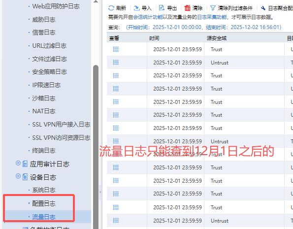 请问FW_1000 防火墙自带有500G硬盘,如何设置可以让他存储1300终端用户每日的访问日志或者流量日志便于后续中毒的终端追溯啊?目前配置以后安全策略日志只能存储到11%但是设置上限是存储50% 180天,实测只能查到39天之前的日志。流量日志设置上限100%但是只能存到43%就上不去了,只能查65天之前的流量日志。会话列表只能查到一周内的部分会话记录,web页面看到存储空间每天都是剩余44%空间无法使用。请问是否两个日志功能重叠了?为了能查到180天的用户访问记录。请问应该怎么配置合适呢?只开一个也可以。
