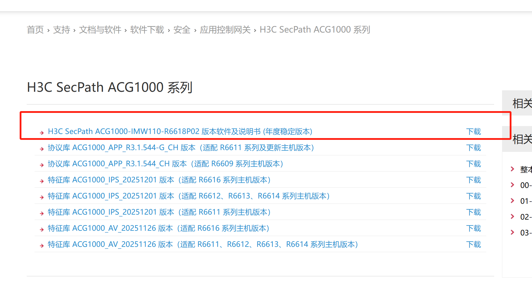 https://www.h3c.com/cn/Service/Document_Software/Software_Download/IP_Security/ACG/H3C_SecPath_ACG1000/?CHID=191045&v=612