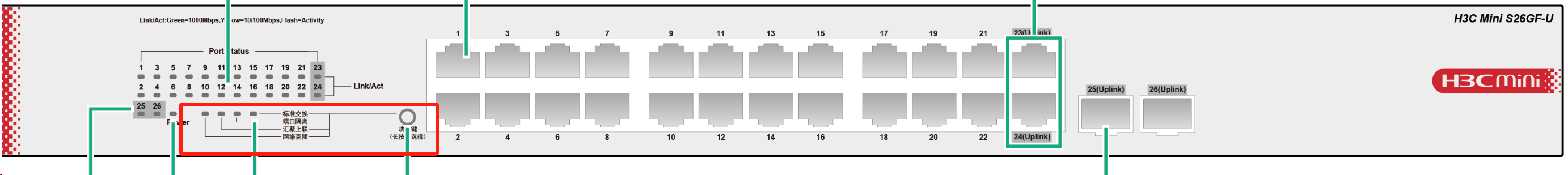 你唯一可以操作的就是,左下角的一键模式切换,支持“标准交换、端口隔离、汇聚上联、网络克隆” 四种工作模式