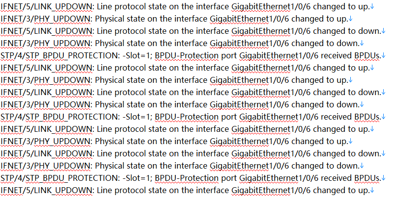 现象解释:家用路由器发出BPDU → 交换机边缘端口收到BPDU → 触发BPDU保护 → 端口被 error-down→ 用户手动恢复端口(或自动恢复) → 再次收到BPDU → 再次被关闭,如此循环,造成端口震荡,设备无法上网。