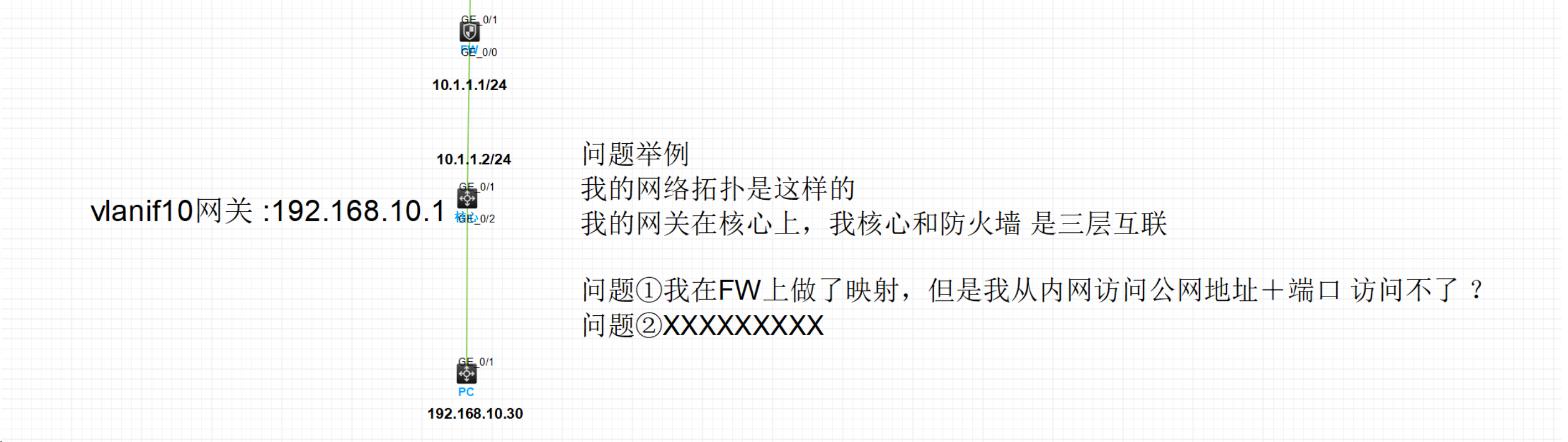 那如果你的防火墙支持nat hairpin enable 你就只需要在防火墙链接核心的口上去配置一下nat hairpin enable就行,就比如我图上防火墙的G0/0口