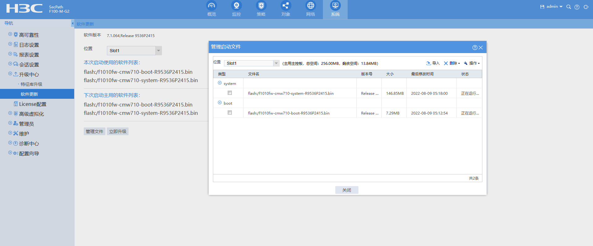 # 删除非常旧的.bin系统文件(例如:`f1000ai-cmw710-system-R8860P25.bin`)