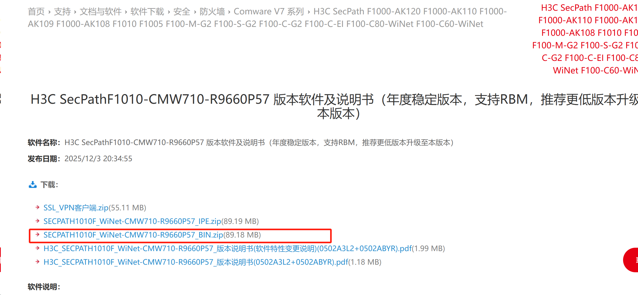 H3C SecPathF1010-CMW710-R9660P57 版本软件及说明书(年度稳定版本,支持RBM,推荐更低版本升级至本版本)-新华三集团-H3C