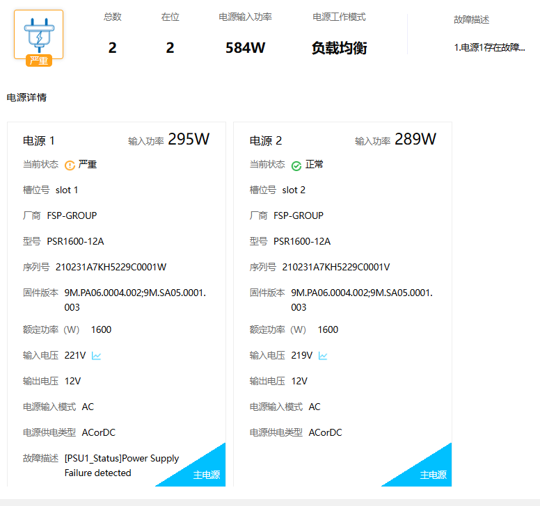 R4300 G3 服务器告警灯亮,登录HDM平台上电源告警,但是服务器后面电源灯是绿色的告警图片如下: