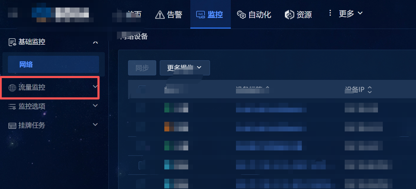 1、前台查看是否安装了NTA组件。点击监控,查看是否有流量监控这个功能。
