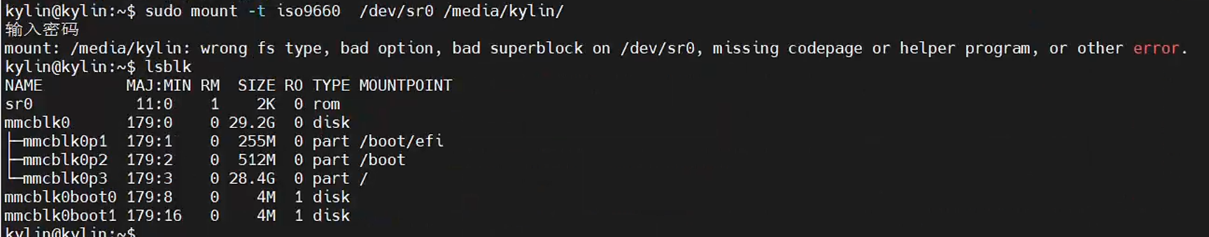 root@kylin:/home/kylin# mount -t iso9660 /dev/sr0 /media/kylin/