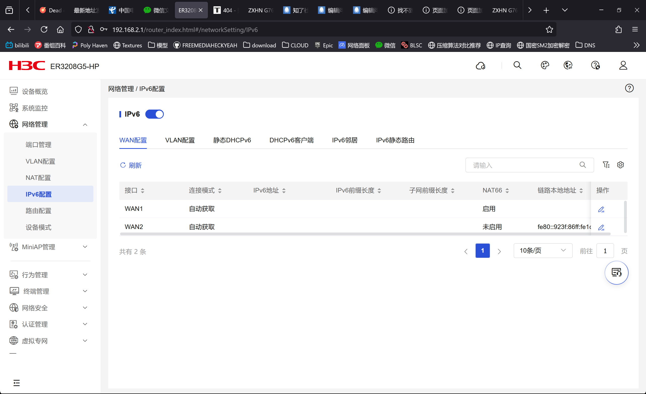 光猫V6连接正常,切换到ER3208G5 拨号就无法自动分配IPV6地址,路由器也无法获取地址。测试过光猫拨号或者TPlink路由器都是可以正常获取以及分配