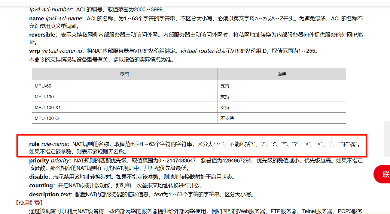 一个nat规则的名称