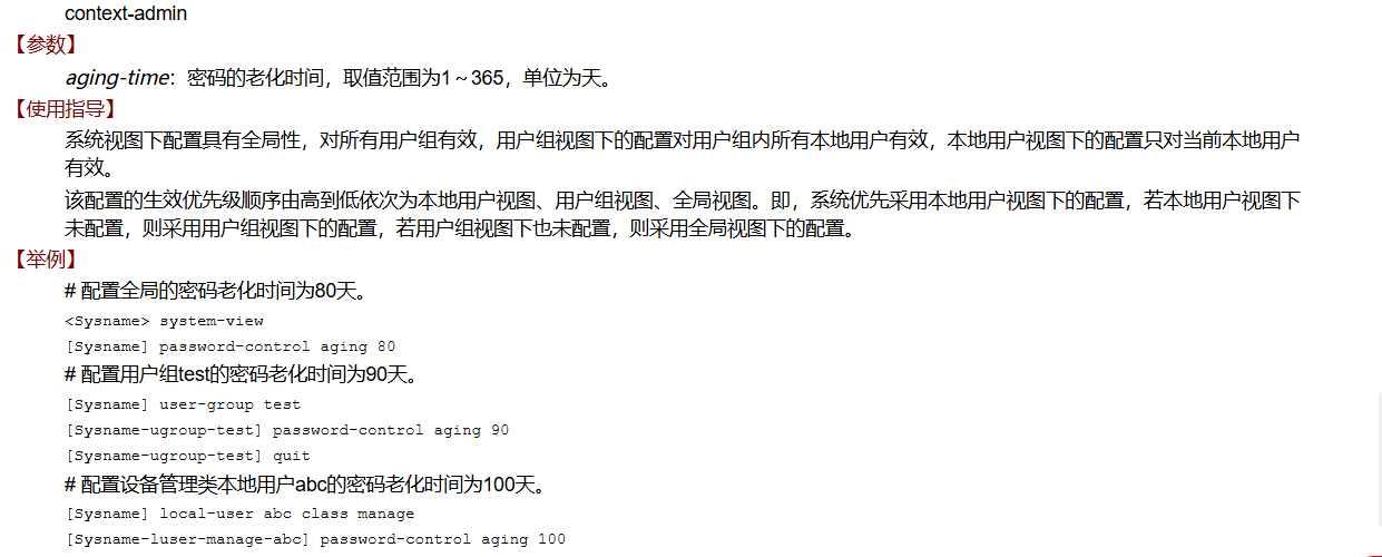alert-time:密码过期前的提醒时间,取值范围为1~30,单位为天。