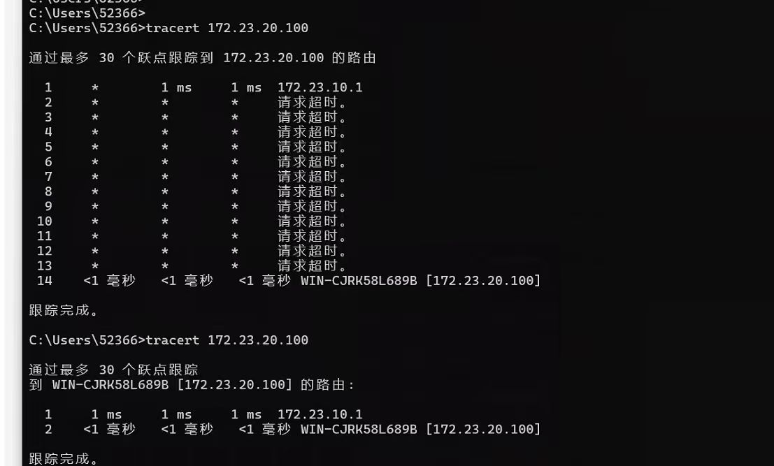 你用的是172.23.10.X网段的电脑去tracert吗?
