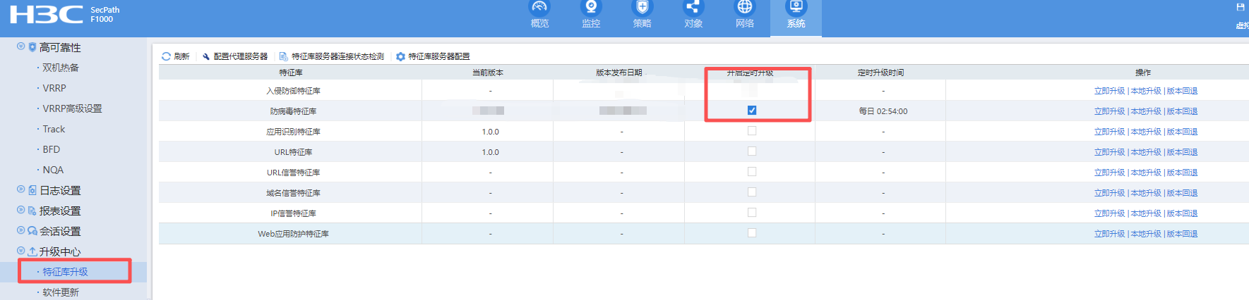 F1000防火墙特征库怎么升级,有详细步骤吗