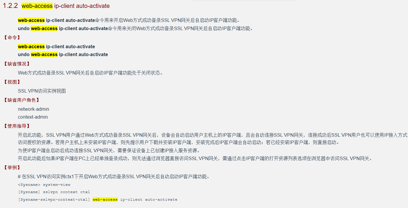 undo web-access ip-client auto-activate命令用来关闭Web方式成功登录SSL VPN网关后自启动IP客户端功能
