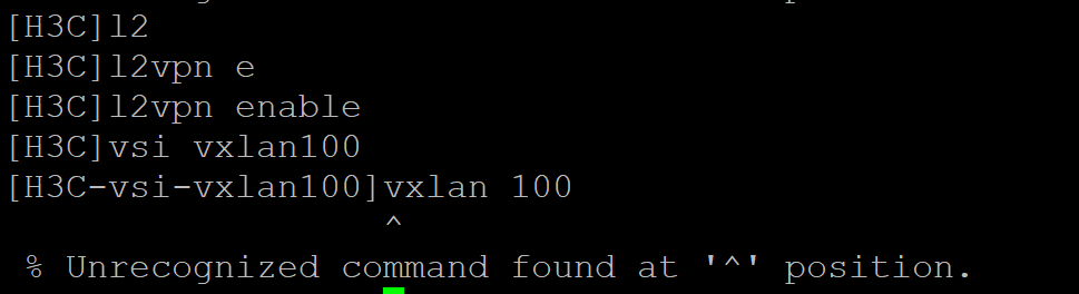 你在 vsi 视图下输入 vxlan 100 报错,很可能是因为你当前使用的设备在 HCL 中根本不支持这条命令。