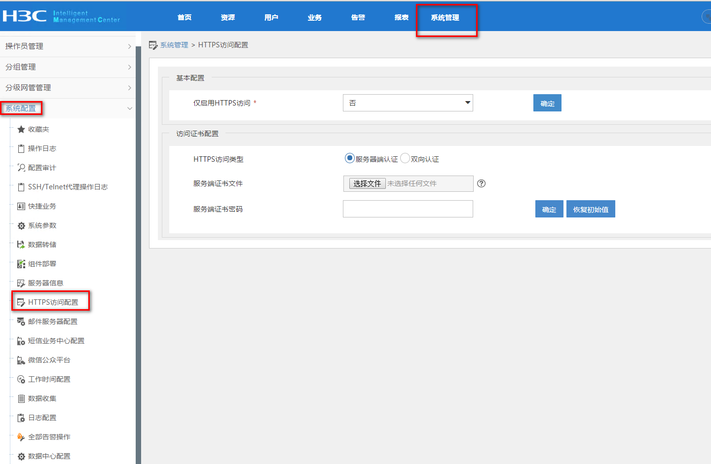 commonCfg.properties 中查看)H3CiMC-Server)。https://iMC_IP:8443。