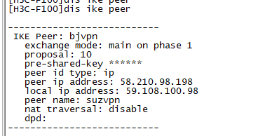 H3C SecPath F100-C-G2和H3C SecPath F100-C-G 建立ipsec 不通,debug信息没有;两端的配置检查过 display ike 和display ipsec的信息相同;不同点是两个设备的ike 的配置方式不同;