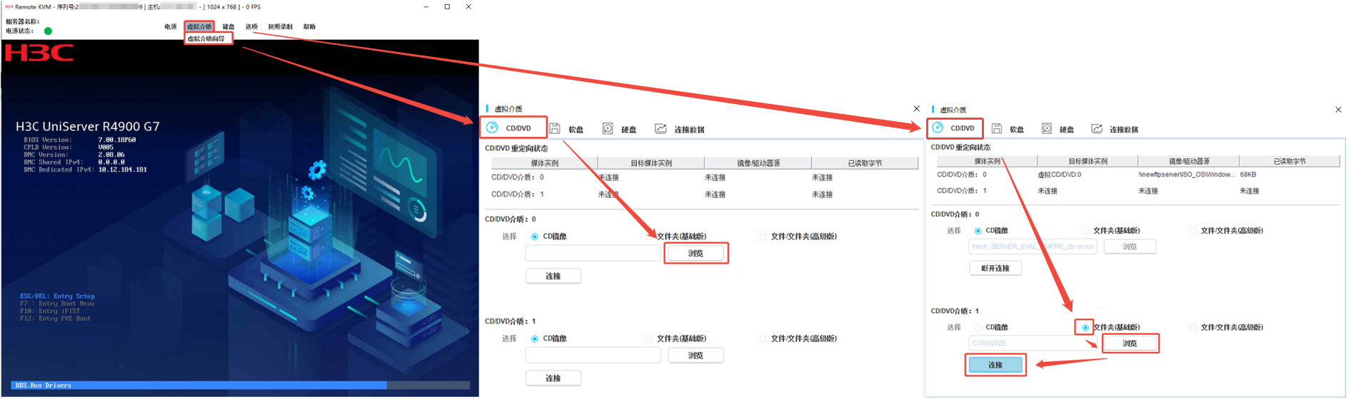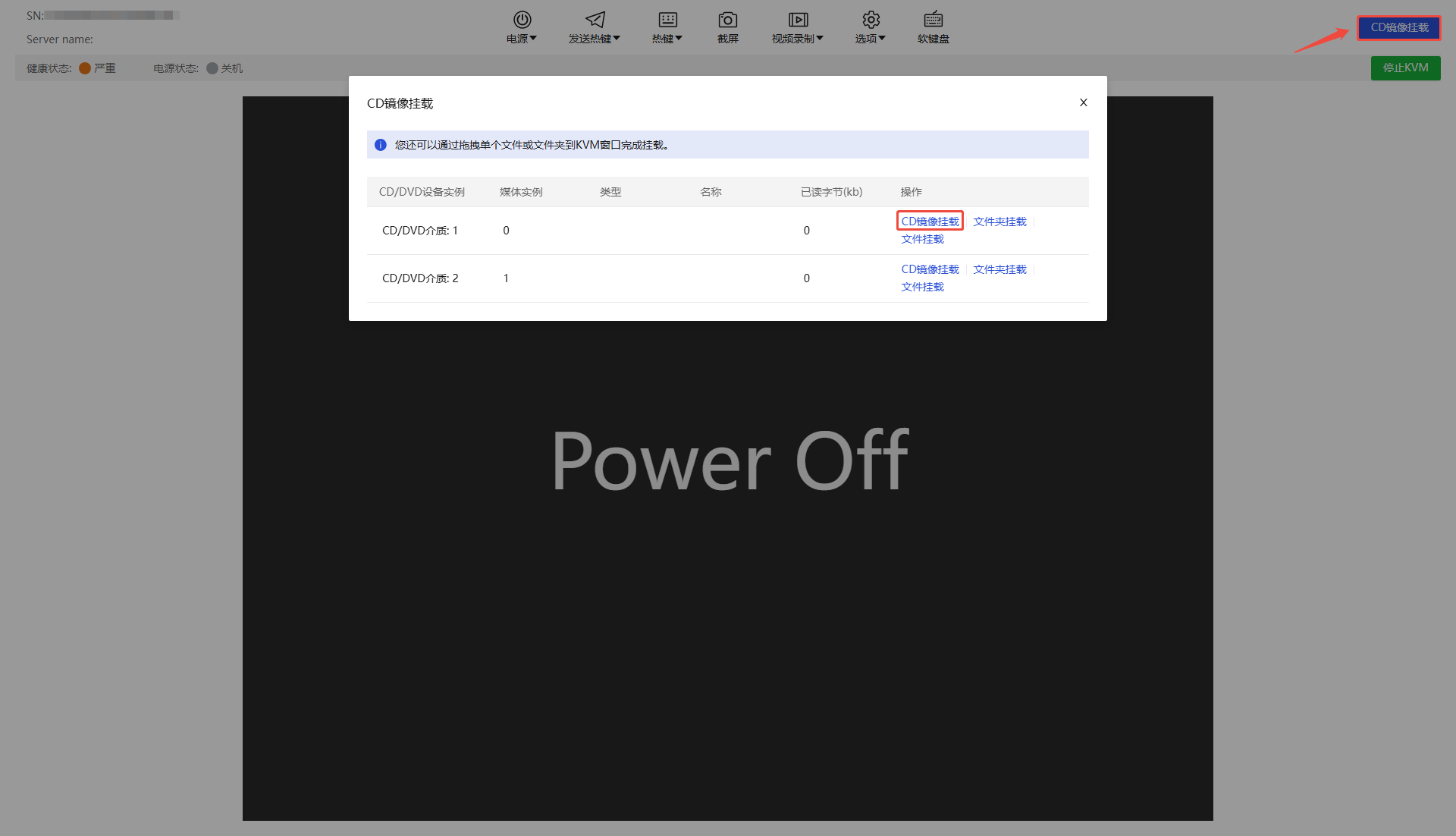 2)将操作系统镜像拷贝到U盘里插到服务器上或使用HDM远程控制台挂载虚拟介质将系统镜像文件挂载到服务器上。