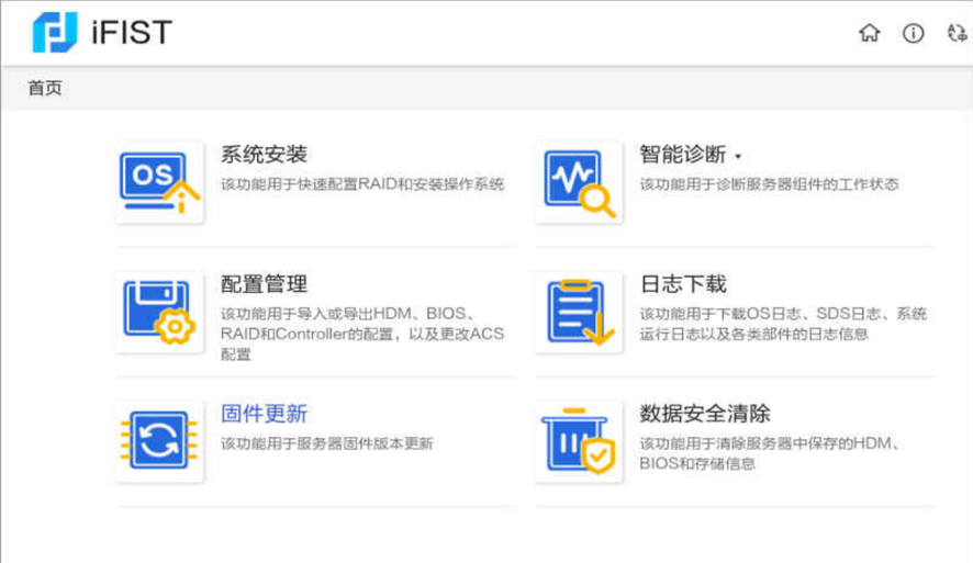 3)开启服务器,在启动界面(参考图1-3)按F10进入到iFIST工具中。选择“系统安装”并按照提示进行操作系统的安装与部署。