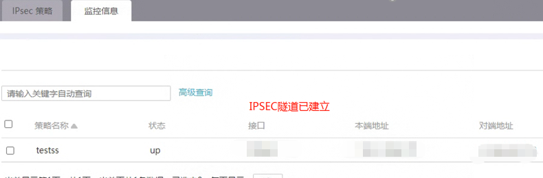>> UR/ERG3的”IPsec VPN“的”监控信息“和”L2TP服务器端“的”隧道信息“中可以看到已经搭建成功的隧道信息。